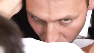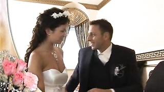 Bride gets plowed in her attractive white wedding dress